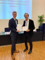 Zum 20. Mal wurde auf der Mitgliederversammlung am 5. November 2024 der Stiftungspreis verliehen. Herr Jannik Löseke wurde für seine Bachelorarbeit mit dem Titel «Correlation of adhesion and composition of mixed monolayers at adhesive/metal interfaces» geehrt. In seiner Arbeit lag der Schwerpunkt auf der Entwicklung und Charakterisierung gemischter funktionalisierter und nicht-funktionalisierter, mehr oder weniger geordneten Monolagen. Die grundlegende Idee war es, sowohl die Haftung als auch den Korrosionsschutz an Klebstoff-Metall-Grenzflächen zu verbessern. Als Testsubstrat wurde die Aluminiumlegierung AA2024 gewählt, da sie aufgrund ihres vorteilhaften Festigkeit-zu-Gewicht-Verhältnisses häufig in industriellen Anwendungen eingesetzt wird.